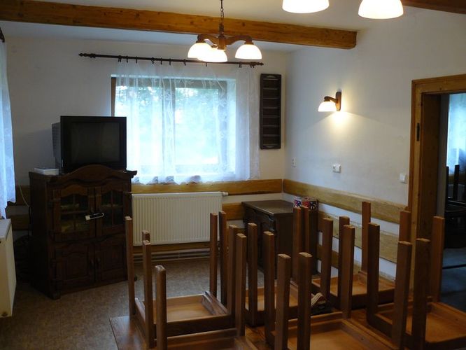 V útulné horské chatě Šúsovka je v přízemí zádveří (2x WC, 2x umyvadlo), vstupní hala (botník), plně vybavená kuchyně (kuch. linka včetně nádobí, hrnců, příborů atd., mikrovlnka, rychlovarka, plynový sporák, elektrický sporák, 2x pečící trouba atd.), spíž (2x lednice, pultový mrazák, regály na jídlo), dvě společenské místnosti pro 50 osob (TV), stylová kamenná místnost.