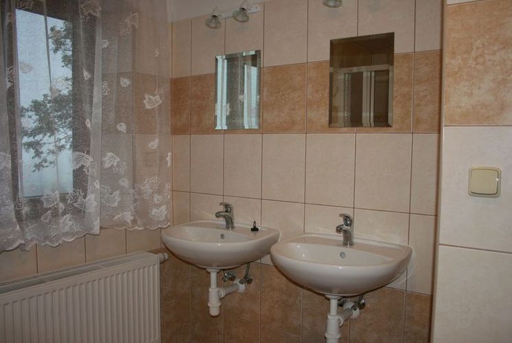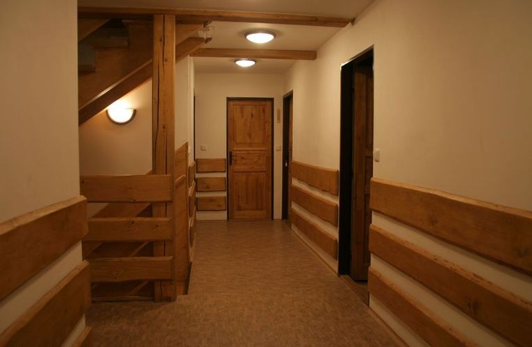 V nadzemním podlaží je sedm pokojů (po 7, 5, 4, 4, 4, 4, 2 lůžkách), dvě prostorné koupelny, 8x umyvadlo, 4x sprchový kout, 3x WC.