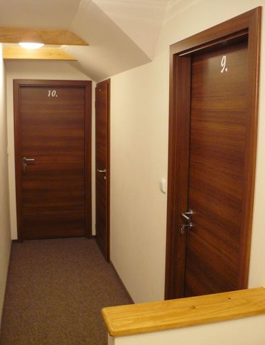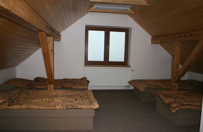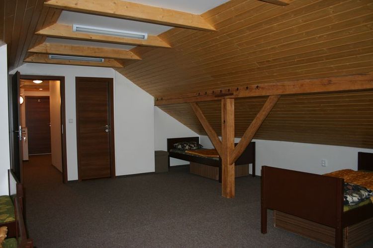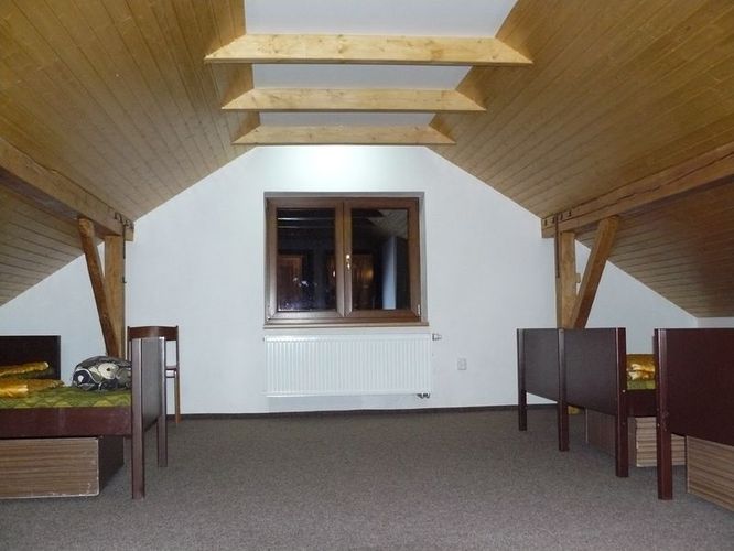 V podkroví objektu jsou tři pokoje (po 6, 4, 4 lůžkách), každý s vlastním soc. zařízením včetně sprchového koutu.