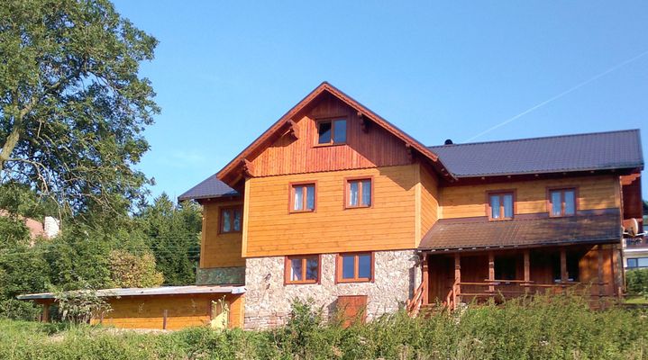 Vedle hlavního vchodu je prostorná uzamykatelná lyžárna (úschovna kol), 2x zastřešená pergola, ohniště s posezením.